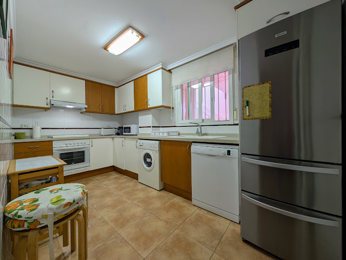 La cocina independiente, amplia y funcional, se convierte en el corazón de la casa, un espacio donde preparar recetas mientras la vida fluye en el salón contiguo.
